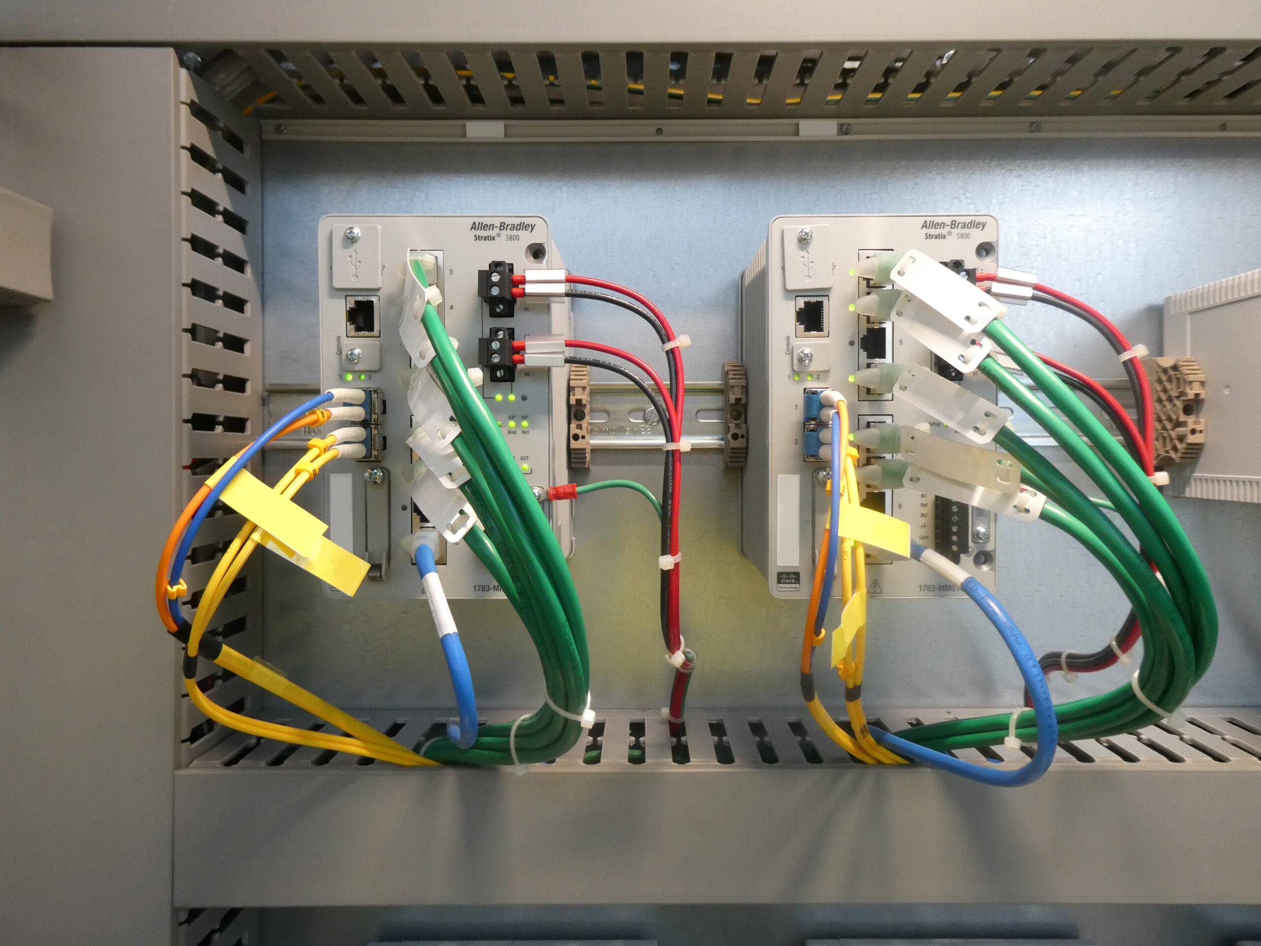 Industrial-grade switches, routers, VLAN setup, and site integration.